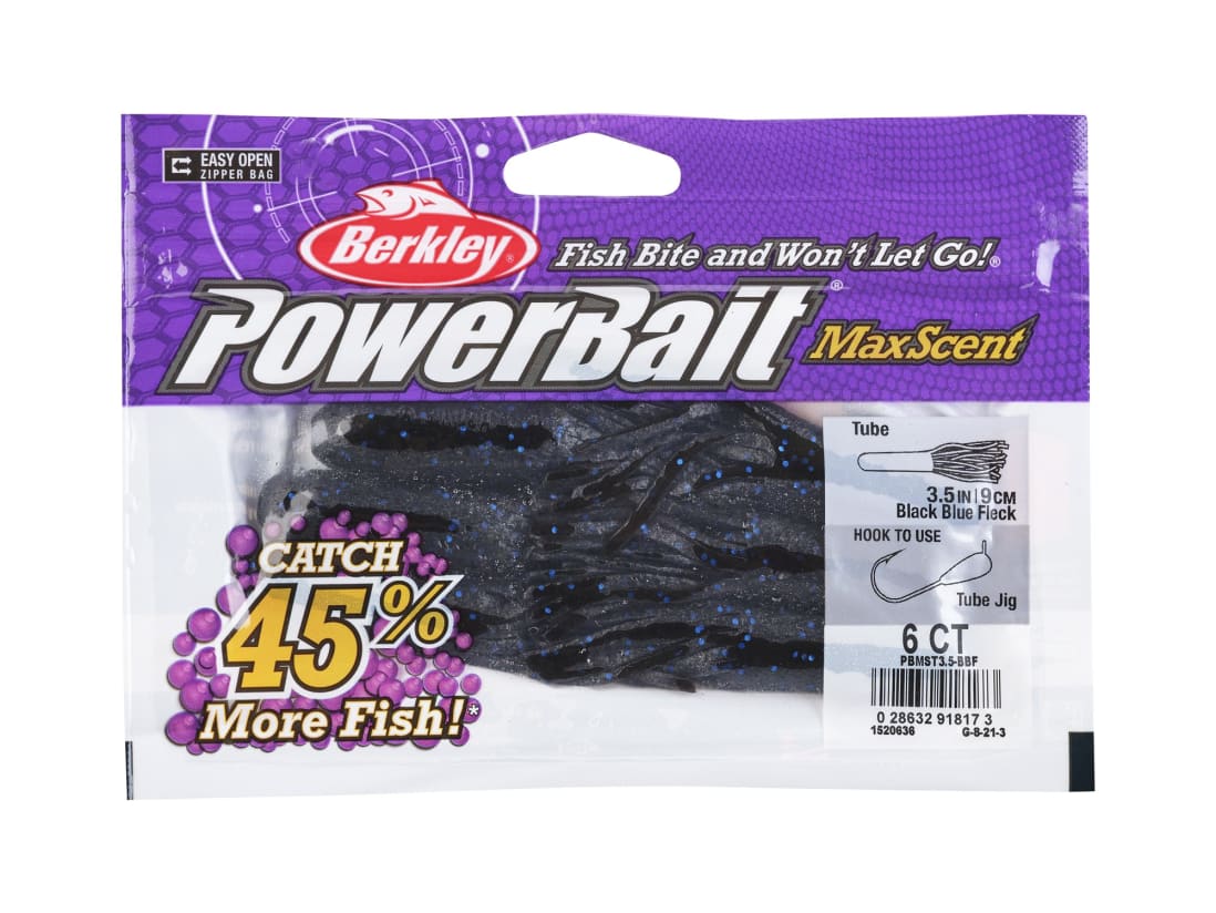 The tube is already a proven classic, and the Berkley Powerbait MaxScent Tube takes things to a whole new level. Featuring the classic tube body and tentacles, the Berkley Powerbait MaxScent Tube brings a level of scent and mouthfeel that fish have never seen from another tube. Peg this tube with your favorite internal jig head, throw it over rocks or wood and get ready for some peeling drags.