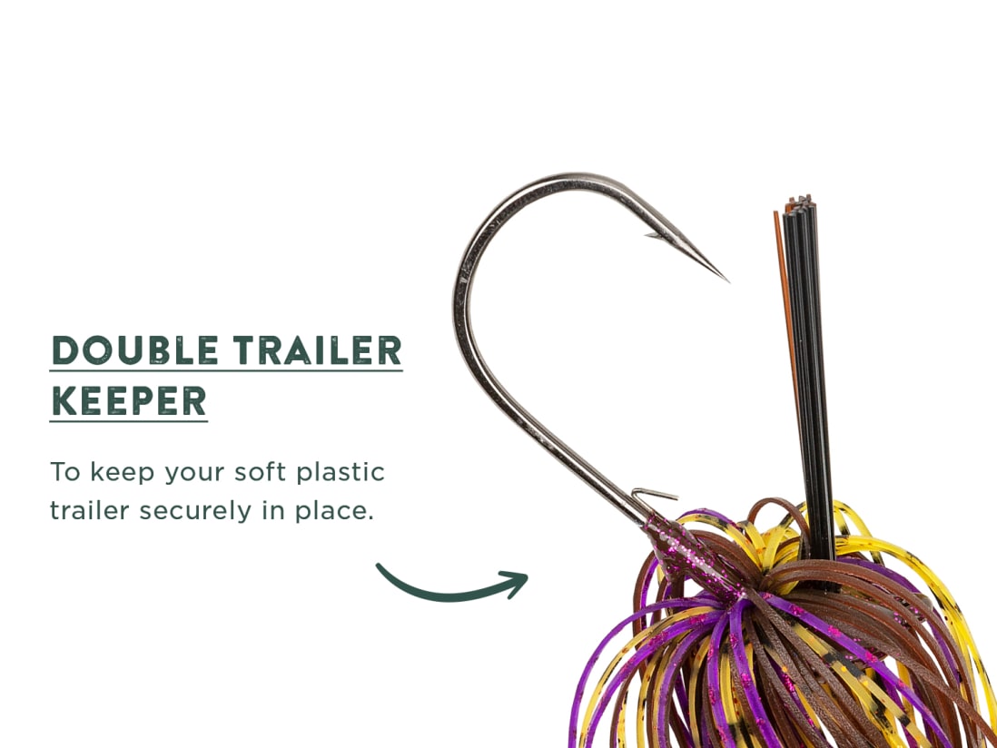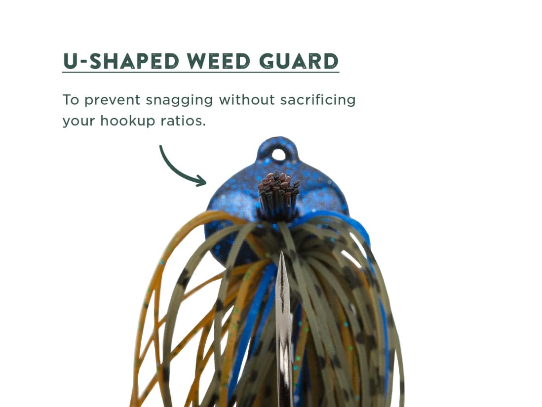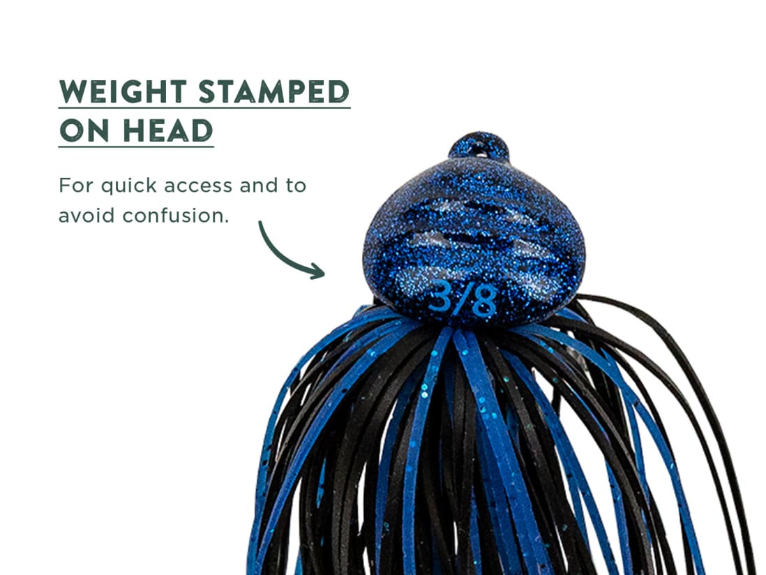The Googan Squad Gridiron Jig is a skirted football jig designed for targeting offshore bass lurking around hardcover and structure. The term ‘’Football Jig’’ comes from the elongated head design that looks like a football. This head shape helps baits slip through cracks, crevices, and hangups. The Gridiron jig also maintains an upright positioning while working its way through rocks and structure. Use the Googan Gridiron Jig whenever fishing deep rocks, ledges, points, and hardbottom areas. The light weedguard and thinner hook gauge will help you connect with fish on longer hooksets. Each Gridiron Jig has a ribbed head design, which adds to this jigs performance and looks. Each Googan Jig Includes: Hand Tied Skirt Double Trailer Keeper Mustad Hooks Weight size printed on jighead
