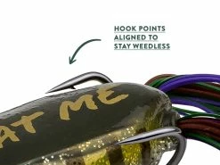 The Googan Squad Poppin’ Filthy Frog is designed to splash, spray and spit your way into a bite. The 100% weedless body also allows you to fish it in the thickest slop, while the protective tubing around the hook keeps water out. And, an internal weight improves casting distance while assuring upright landing every cast.