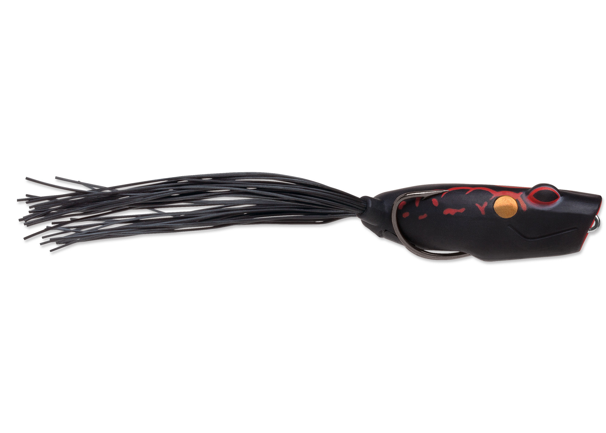 When bass “kiss” this frog, there’s no fairytale ending—they end up in your boat! The Terminator Popping Frog has a cupped face to create a noisy pop when you twitch your rod tip, and lifelike rubber legs amplify the slightest movement. It’s great when fished in a straight line with a slow, steady cadence, but the shape of this frog also enables a gliding walk-the-dog presentation that infuriates hungry bass. The Terminator Popping Frog is designed with most of its 9/16 oz. weight located near the rear, which means the wide gap VMC double hook rests weedless and ready for action near the back of the frog’s extra soft body. Pick up the Terminator Popping Frog today and get ready for explosive topwater action!